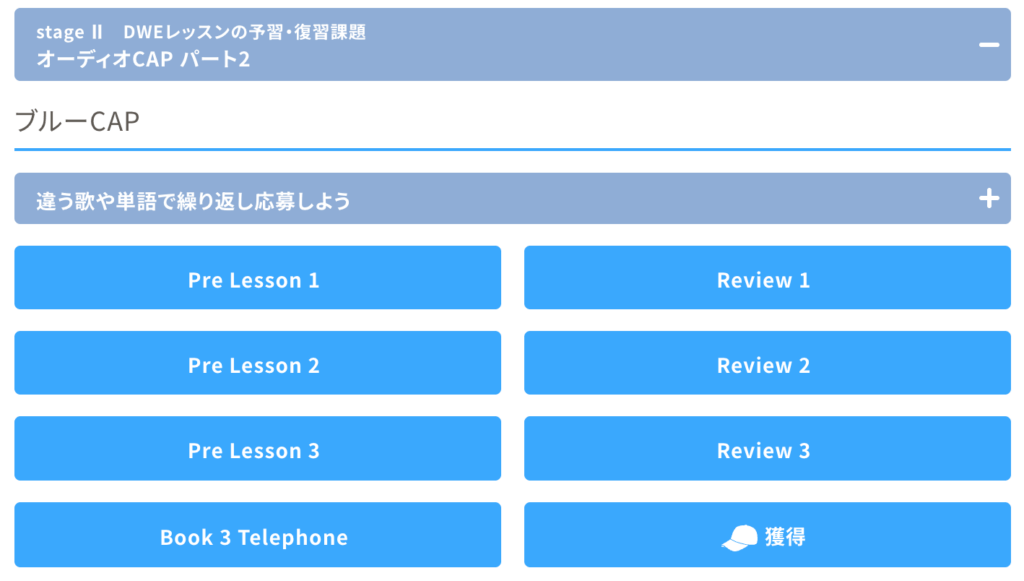 オーディオCAPのページで、こんな風に色が濃くなっている課題は修了しています。